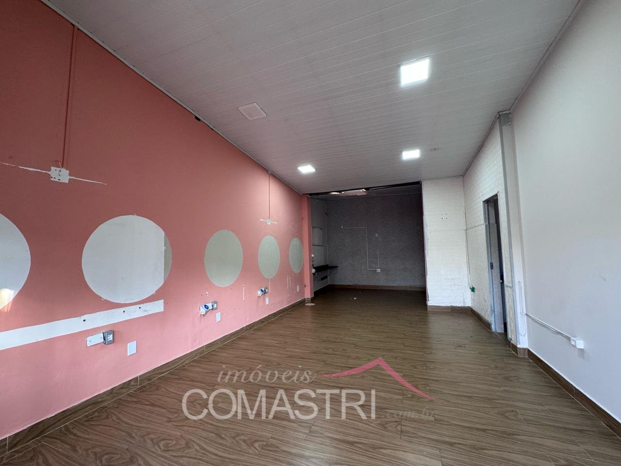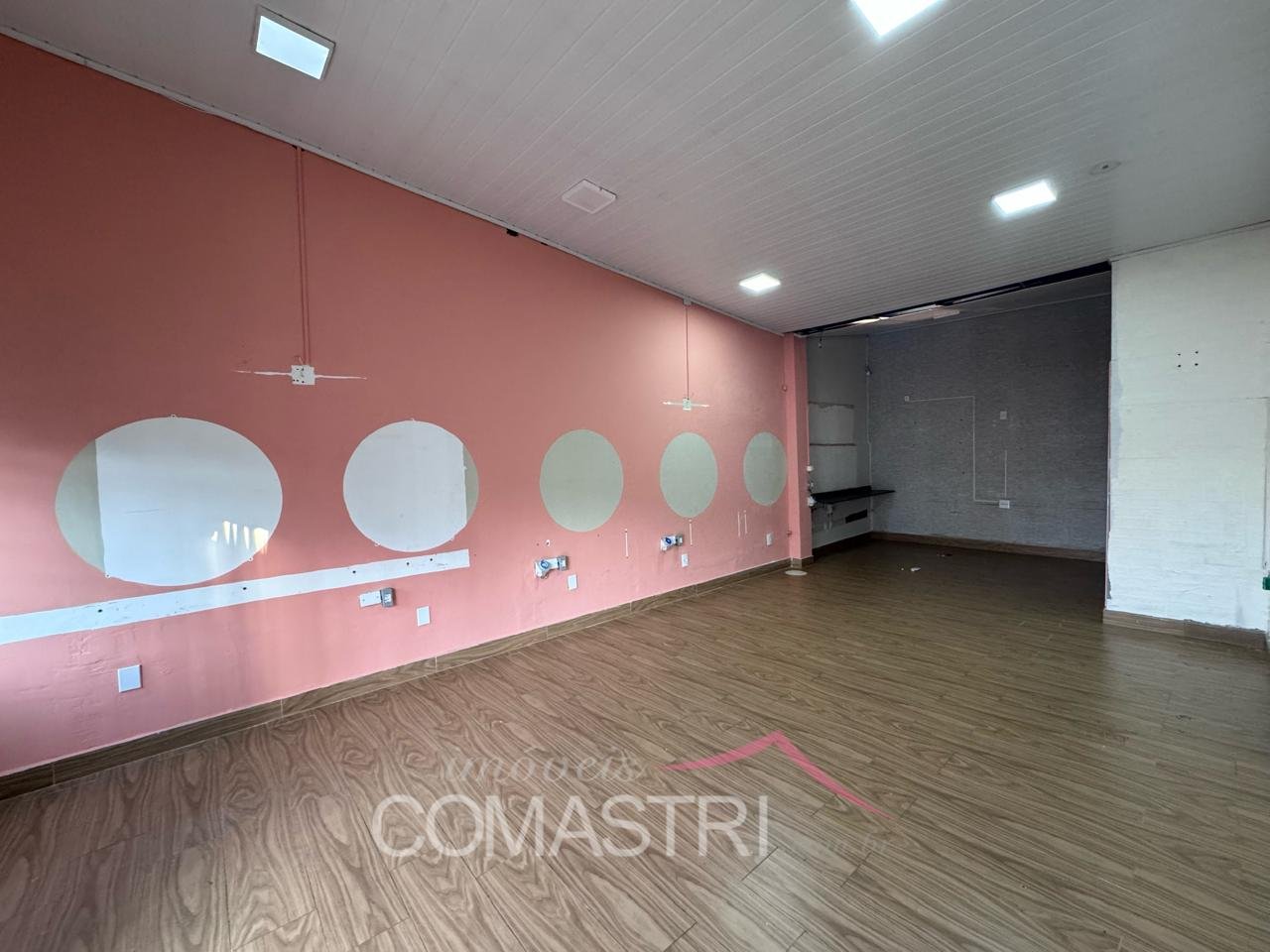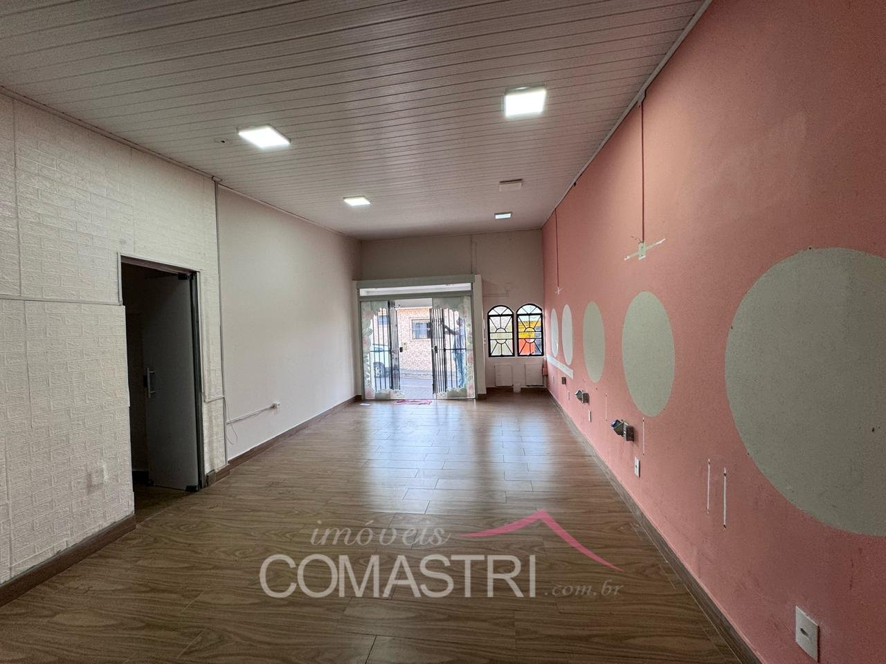 Composto por amplo salão, banheiro social, quarto de dispensa e cozinha.