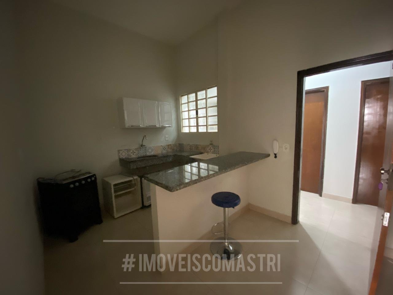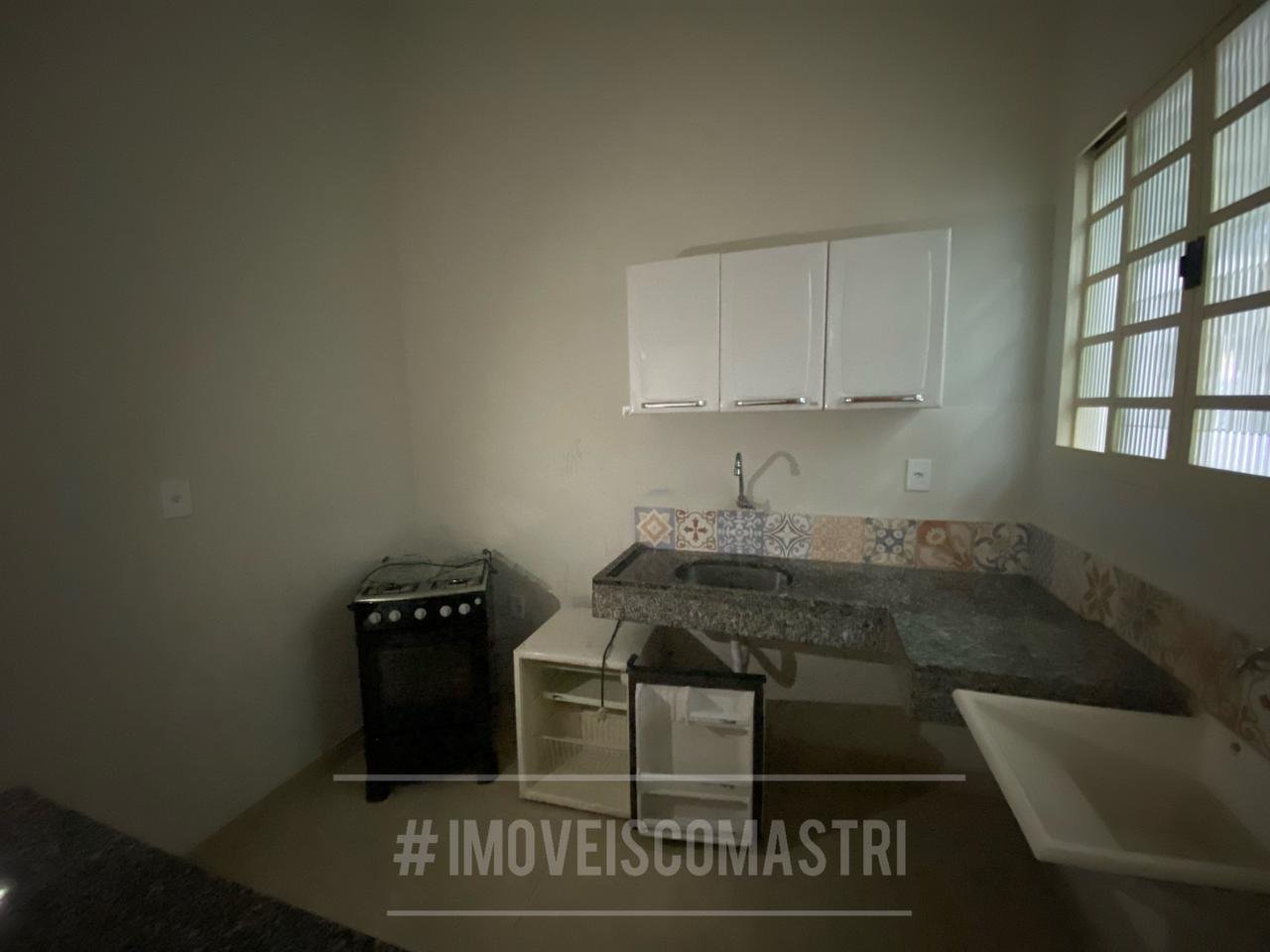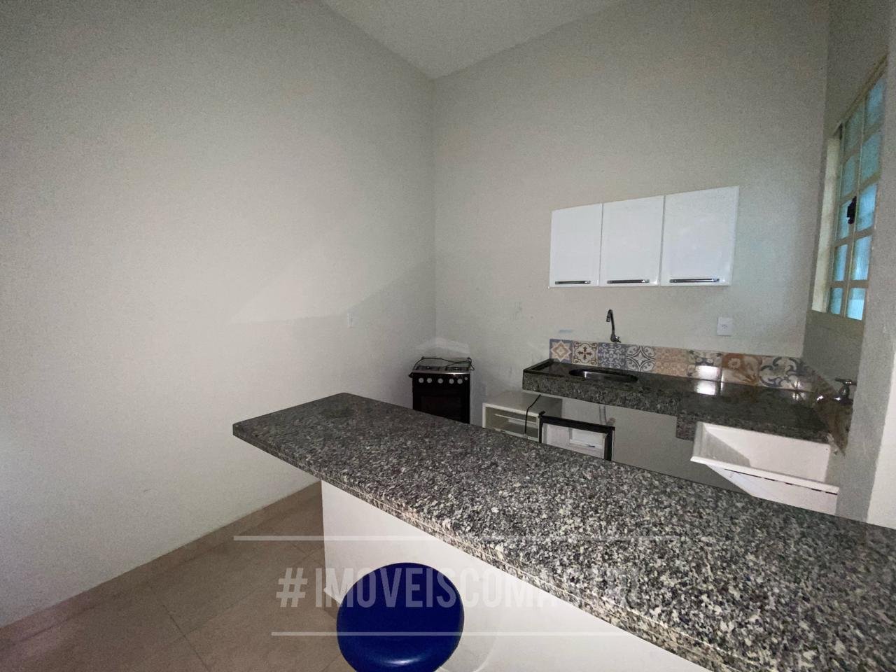 Composto por cozinha (com fogão e frigobar) e suite (com cama de casal e guarda roupa pequeno).